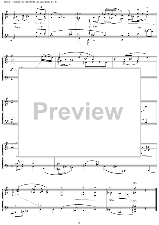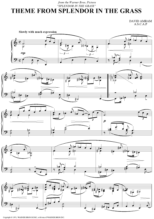 "Theme From Splendour In The Grass" Sheet Music by David Amram