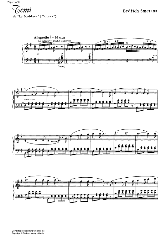 Digital Sheet Music for Themes from Vtlava by Bedrich Smetana scored for Piano Solo; id:329057