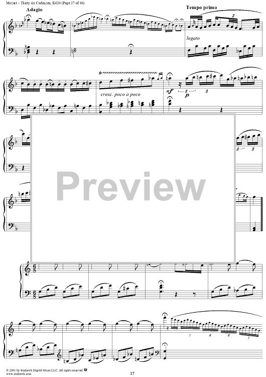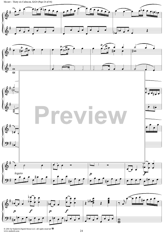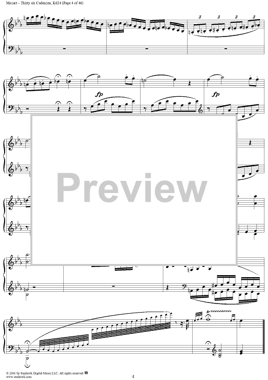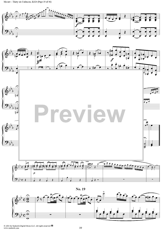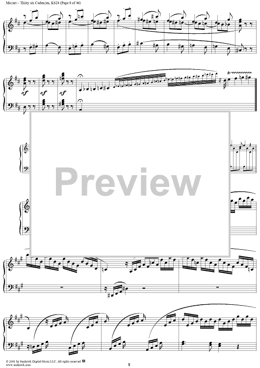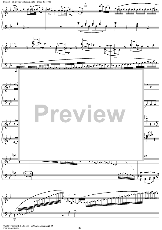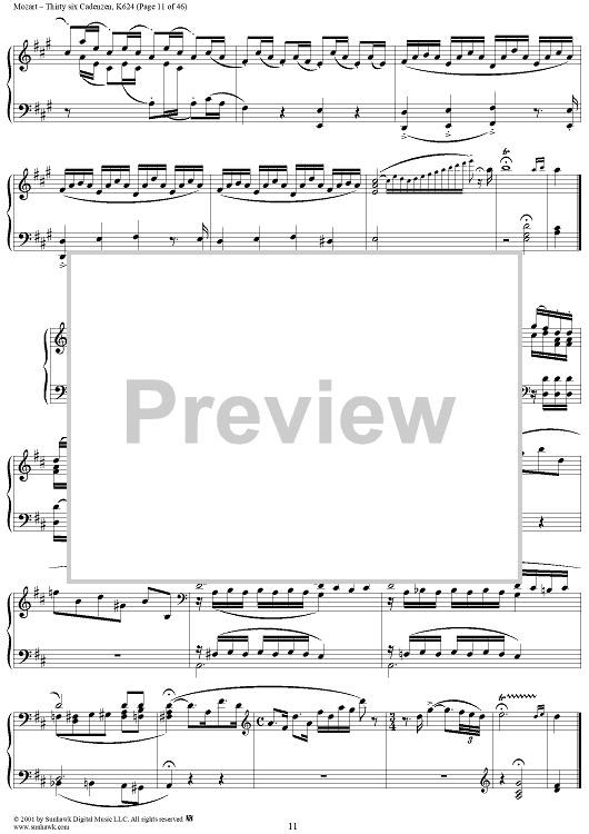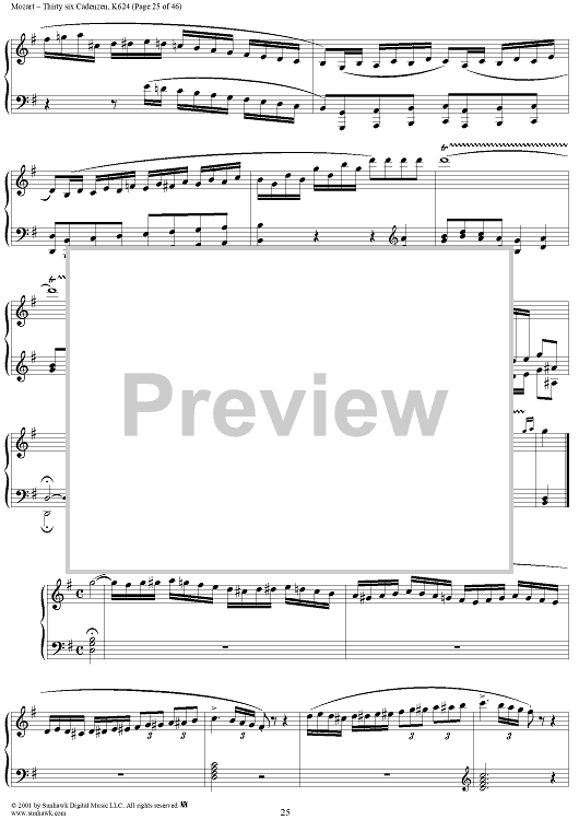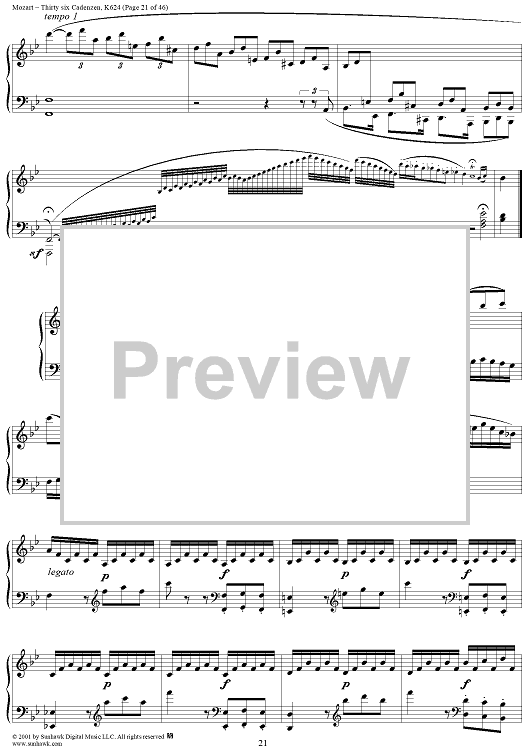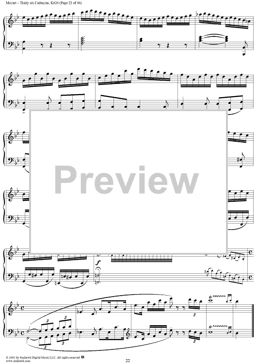 Digital Sheet Music for Thirty six Cadenzen, K624 by Wolfgang Amadeus Mozart scored for Piano Solo; id:262746