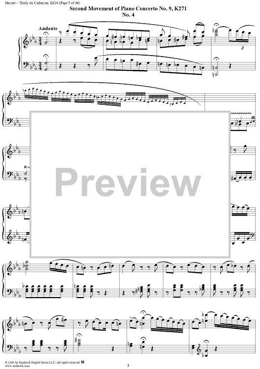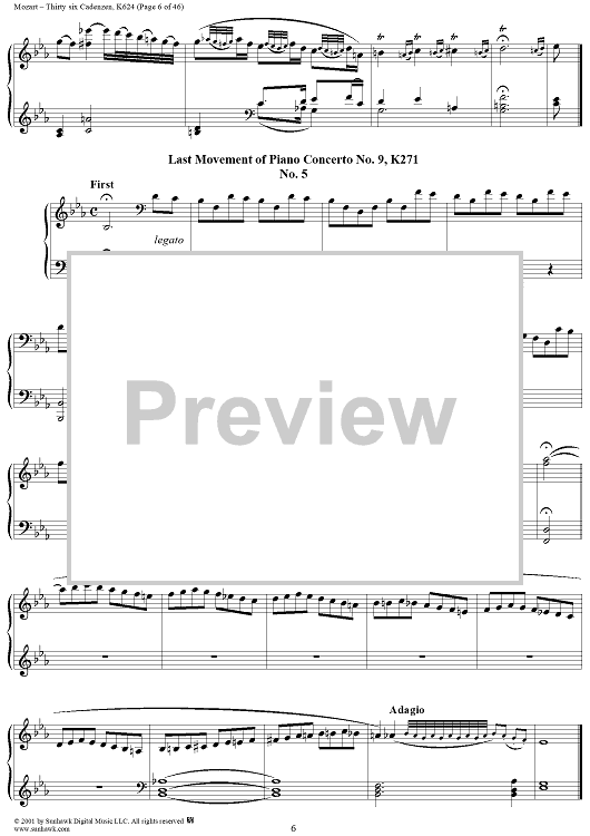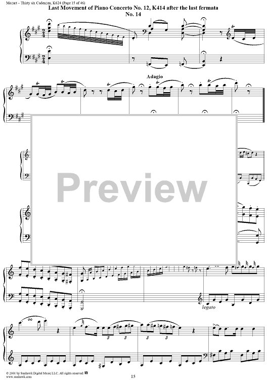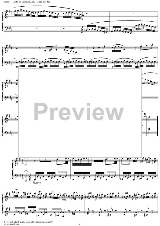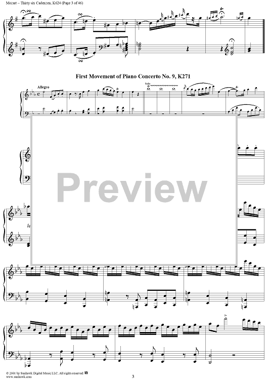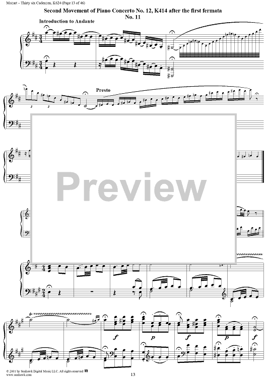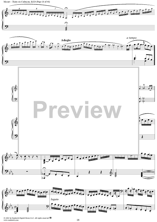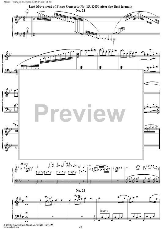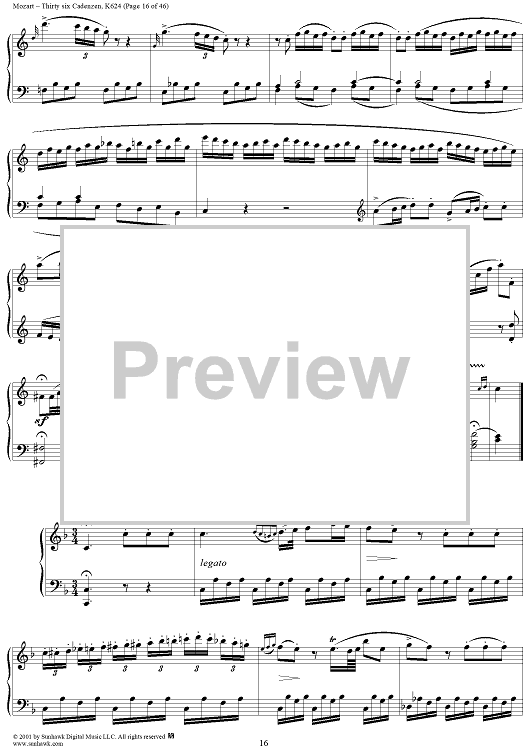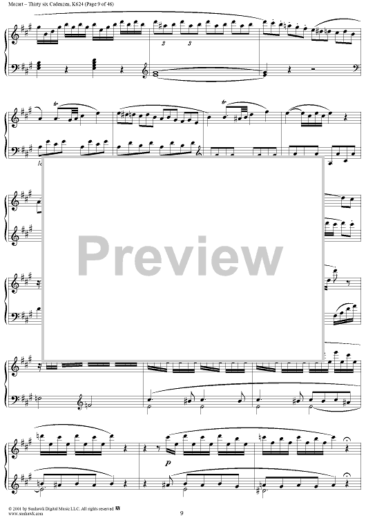 Digital Sheet Music for Thirty six Cadenzen, K624 by Wolfgang Amadeus Mozart scored for Piano Solo; id:262746