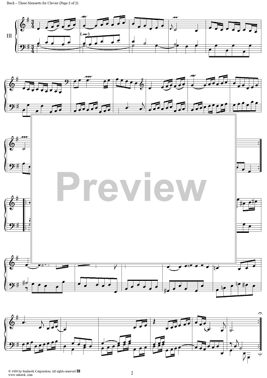 Digital Sheet Music for Three Menuetts for Clavier, BWV841-843 by Johann Sebastian Bach scored for Piano Solo; id:276753