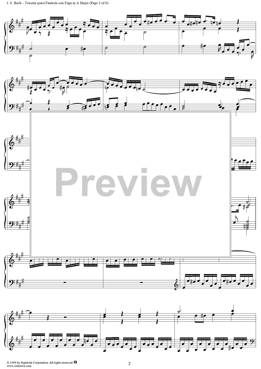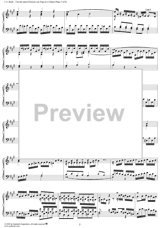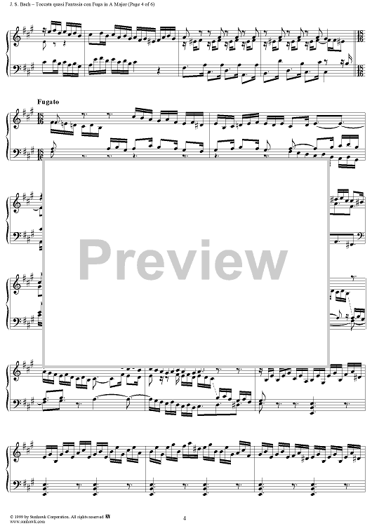 Digital Sheet Music for Toccata quasi Fantasia con Fuga in A major, BWV Anh. 178 by Johann Sebastian Bach scored for Piano Solo; id:276101