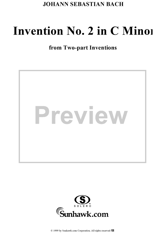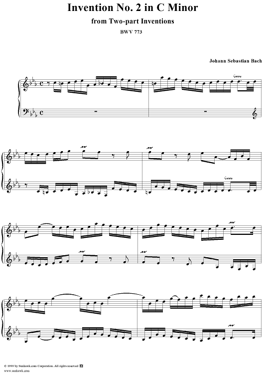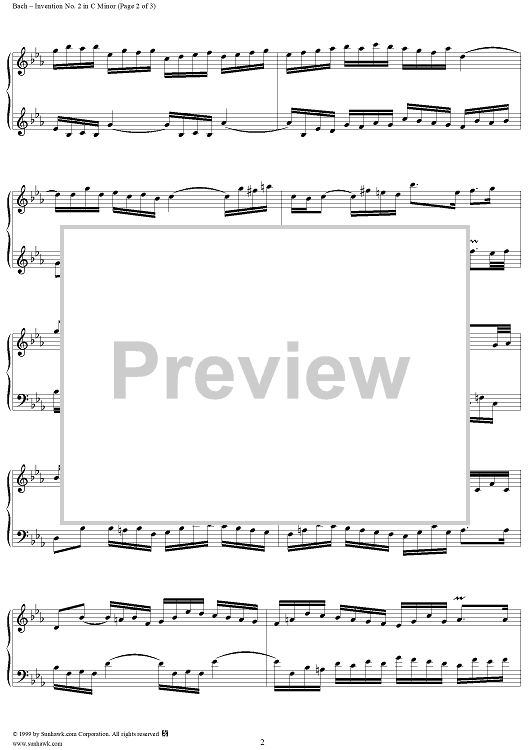 Digital Sheet Music for Two-Part Invention No. 2 in C minor by Johann Sebastian Bach scored for Piano Solo; id:119066