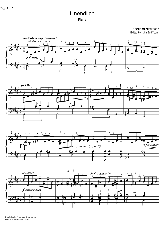 Digital Sheet Music for Unendlich by , Friedrich Nietzsche scored for Piano Solo; id:333328