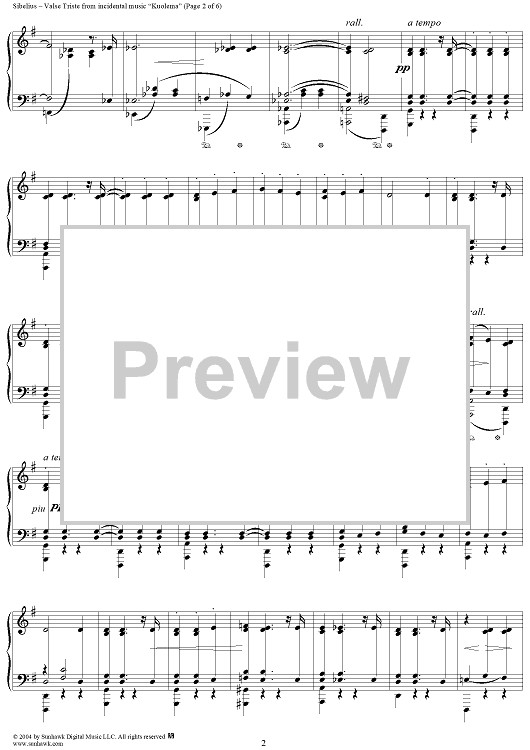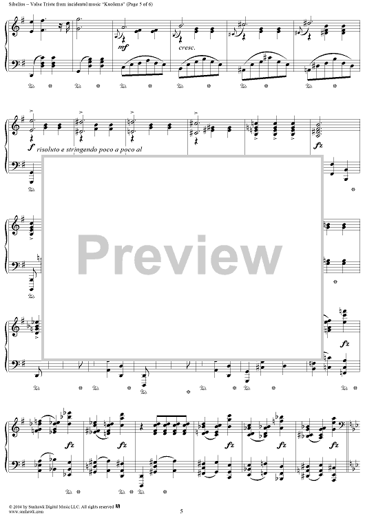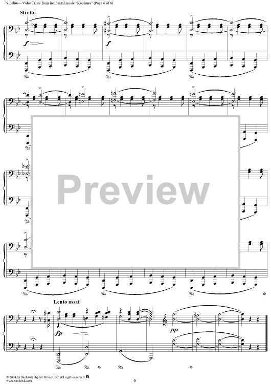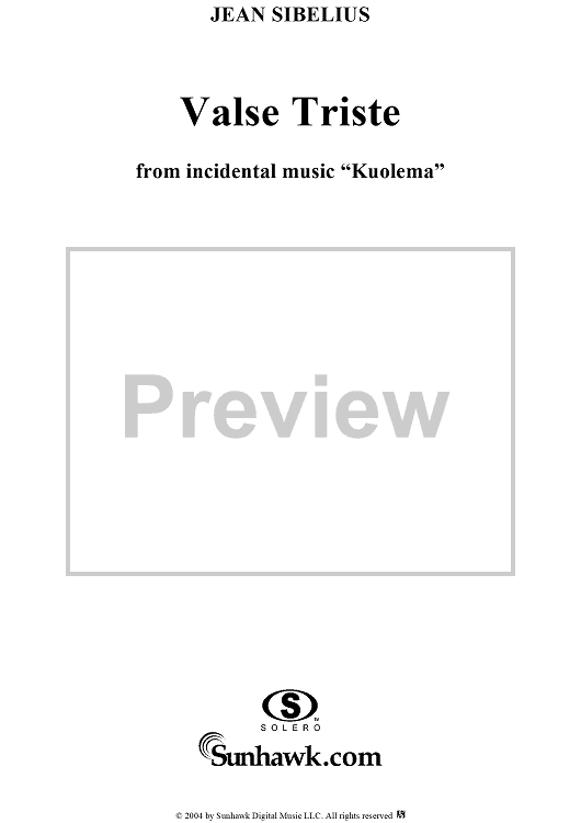 Digital Sheet Music for Valse Triste, from incidental music "Kuolema" (Op. 44) by Jean Sibelius scored for Piano Solo; id:296373