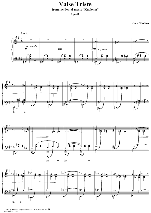 "Valse Triste, from incidental music "Kuolema" (Op. 44)" Sheet Music by Jean Sibelius