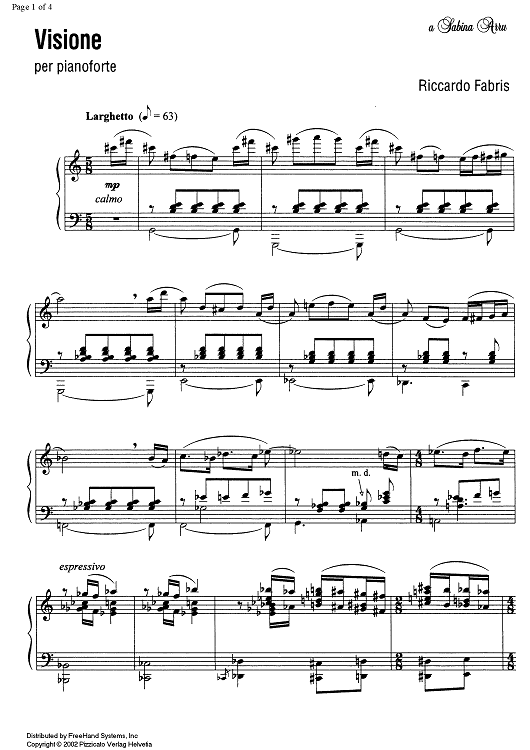 Digital Sheet Music for Visione by , Riccardo Fabris scored for Piano Solo; id:351445