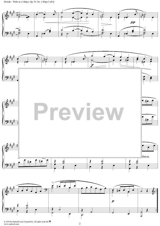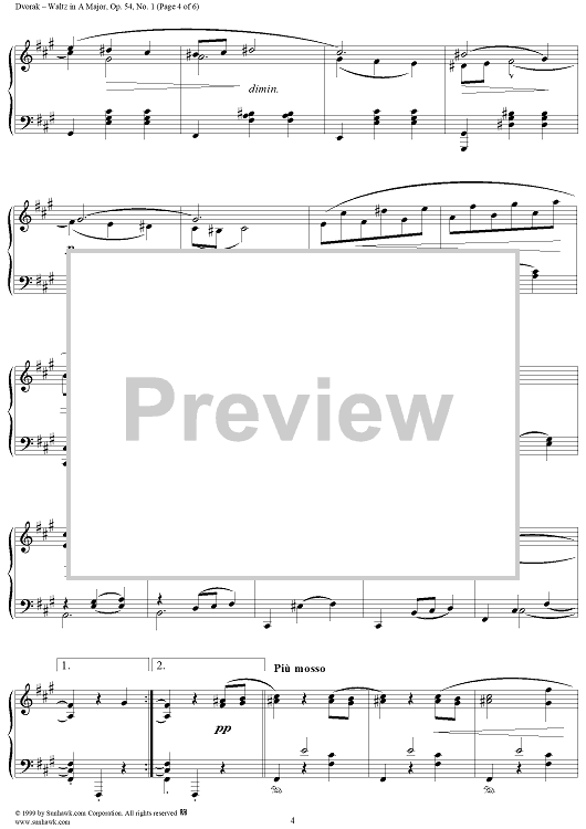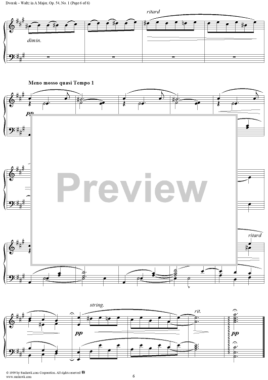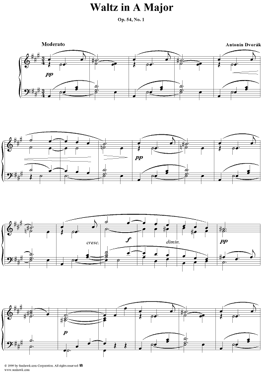 Digital Sheet Music for Waltz No. 1 in A major, op. 54 by Antonín Dvorák scored for Piano Solo; id:119441