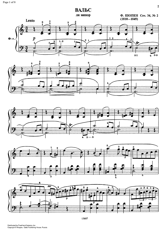 "Waltz No. 3 a minor Op.34 No. 2" Sheet Music by Frederic Chopin