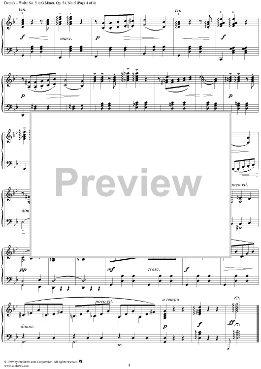 Digital Sheet Music for Waltz no. 5 in G minor, op. 54, no. 5 by Antonín Dvorák scored for Piano Solo; id:118366