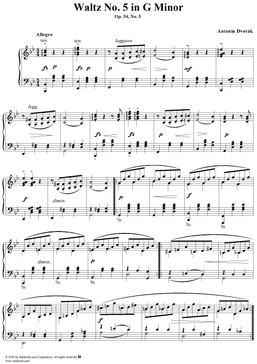"Waltz no. 5 in G minor, op. 54, no. 5" Sheet Music by Antonín Dvorák