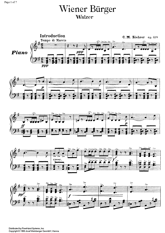 Digital Sheet Music for Wiener Bürger Op.419 by , Carl Michael Ziehrer scored for Piano Solo; id:348341
