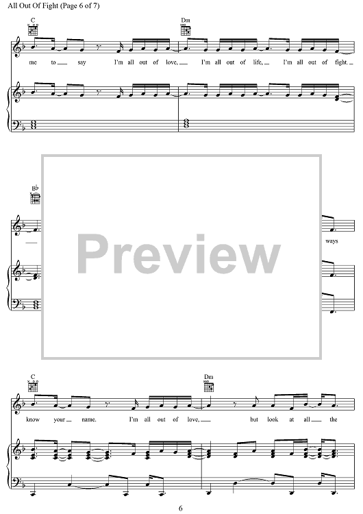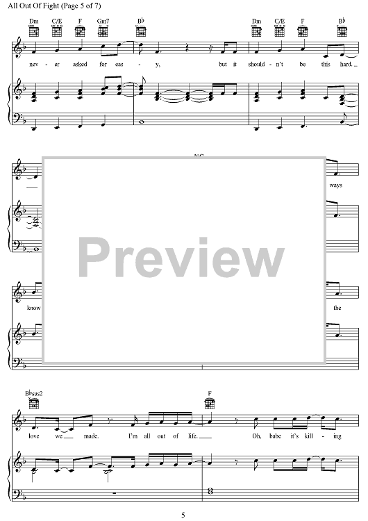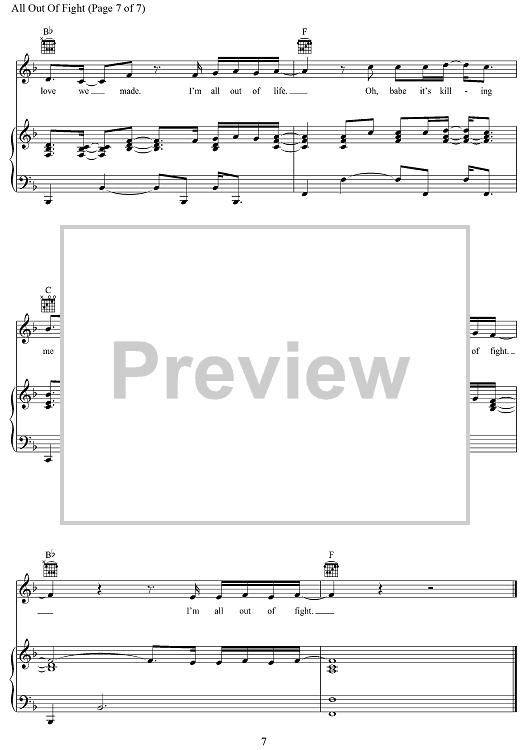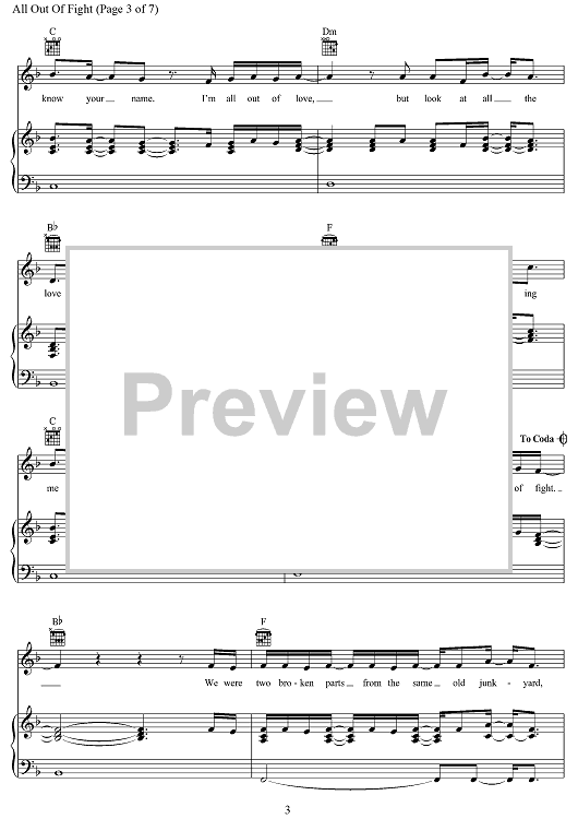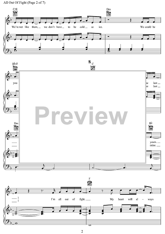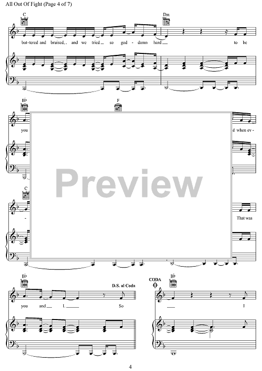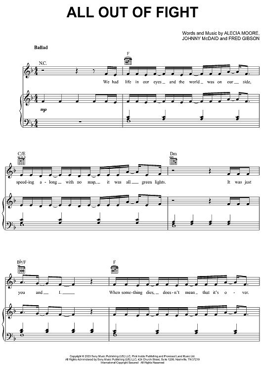 Digital Sheet Music for All Out Of Fight by Alicia B. Moore, Pink, John McDaid, Fred Gibson scored for Piano/Vocal/Chords; id:501338
