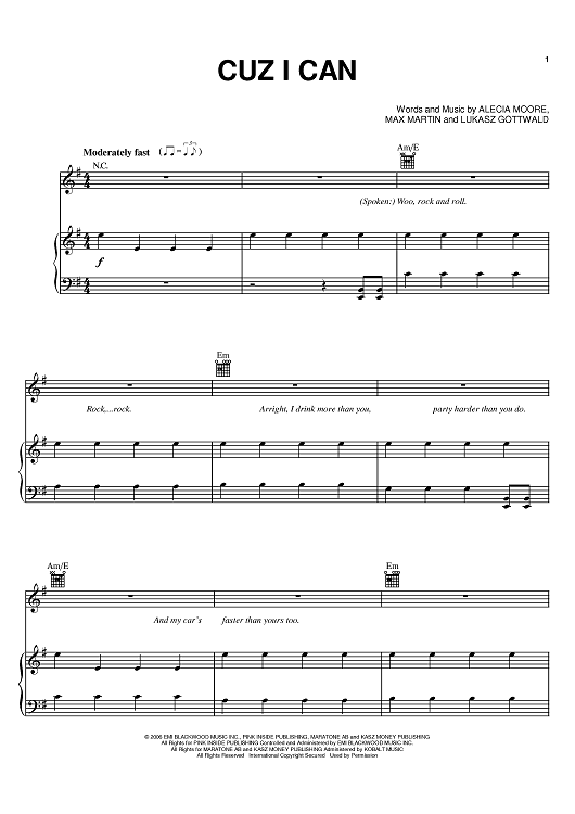Digital Sheet Music for Cuz I Can by Max Martin, Pink, Lukasz Gottwald scored for Piano/Vocal/Chords; id:394162