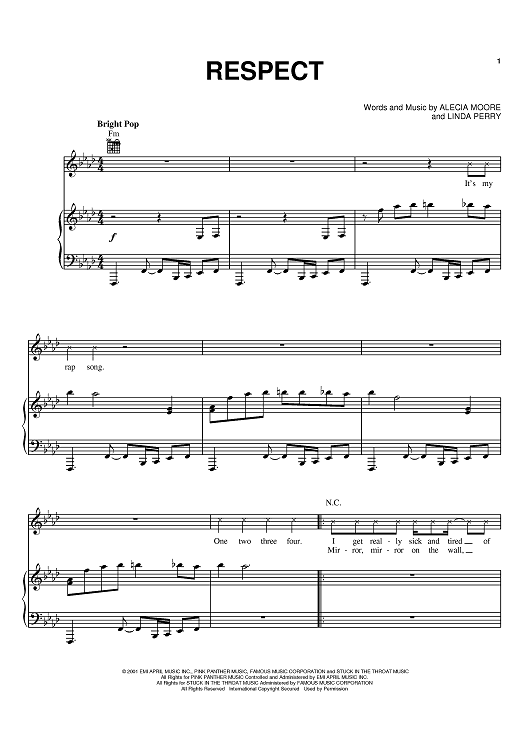 Digital Sheet Music for Respect by Linda Perry, Pink scored for Piano/Vocal/Chords; id:367798