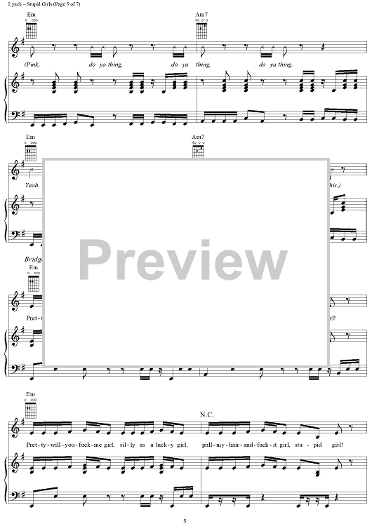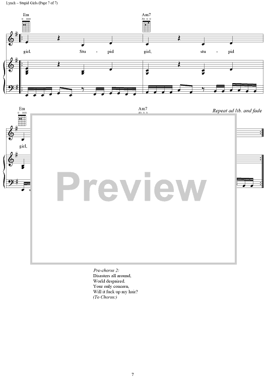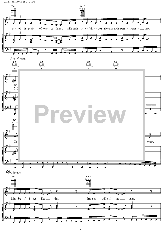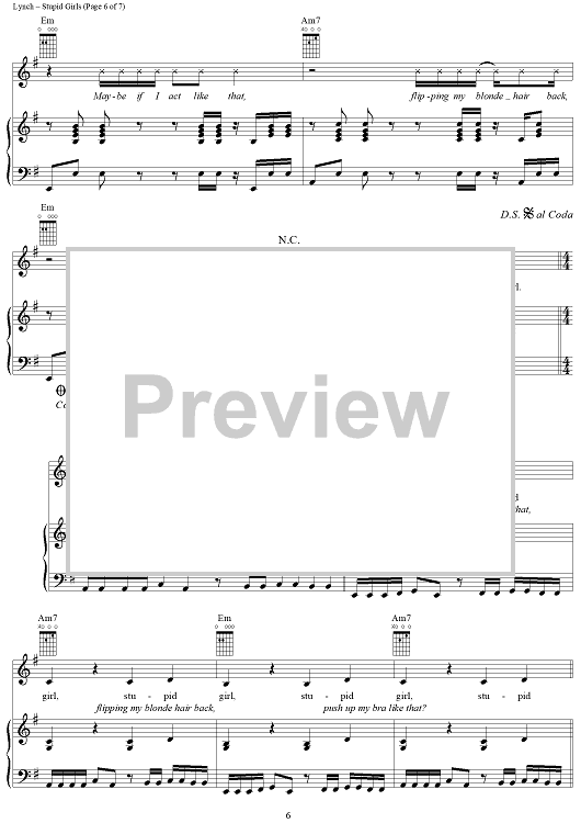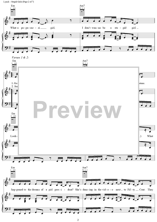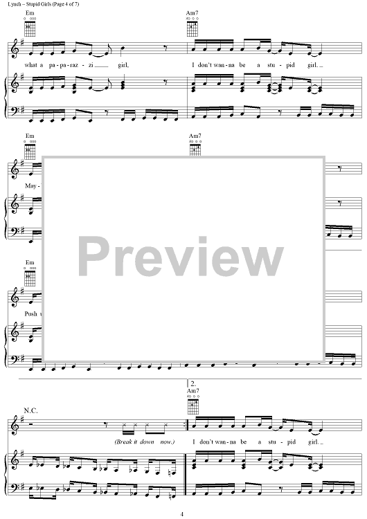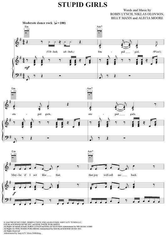 Digital Sheet Music for Stupid Girls by Billy Mann, Robin Lynch, Niklas Olovson, Pink scored for Piano/Vocal/Chords; id:360916