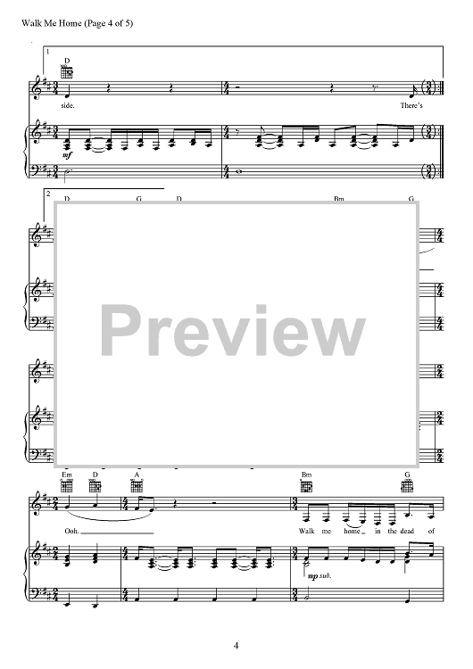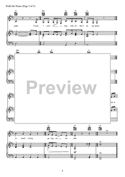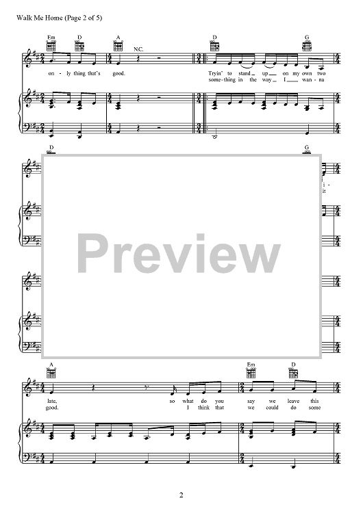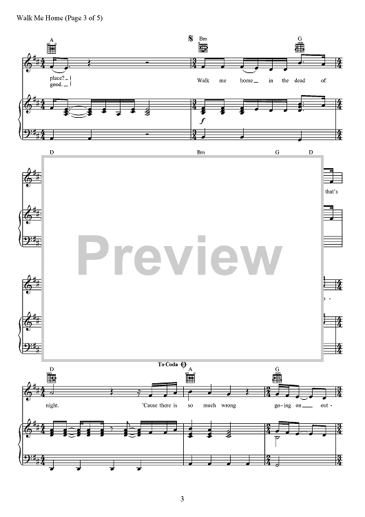 Digital Sheet Music for Walk Me Home by Alicia B. Moore, Pink, Nate Ruess, Scott Harris scored for Piano/Vocal/Chords; id:467376
