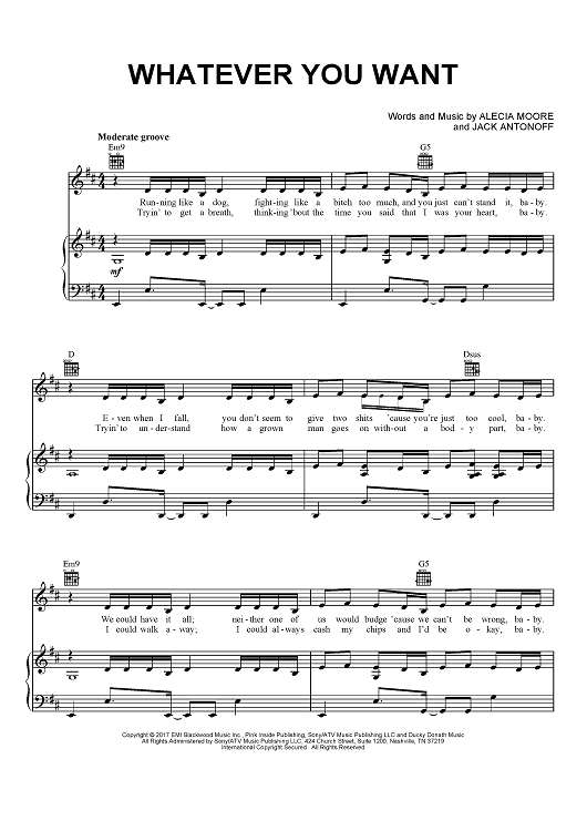 Digital Sheet Music for Whatever You Want by P!nk, Pink, Jack Antonoff scored for Piano/Vocal/Chords; id:465694