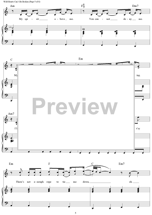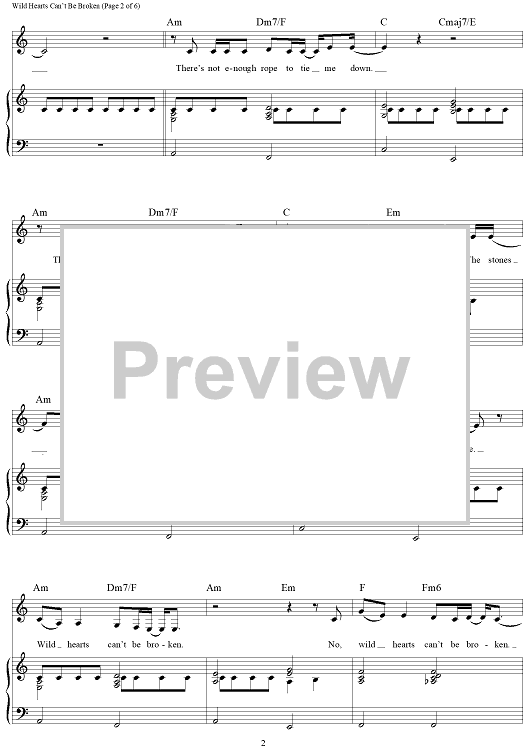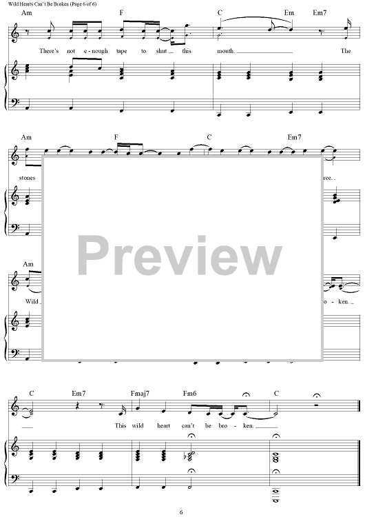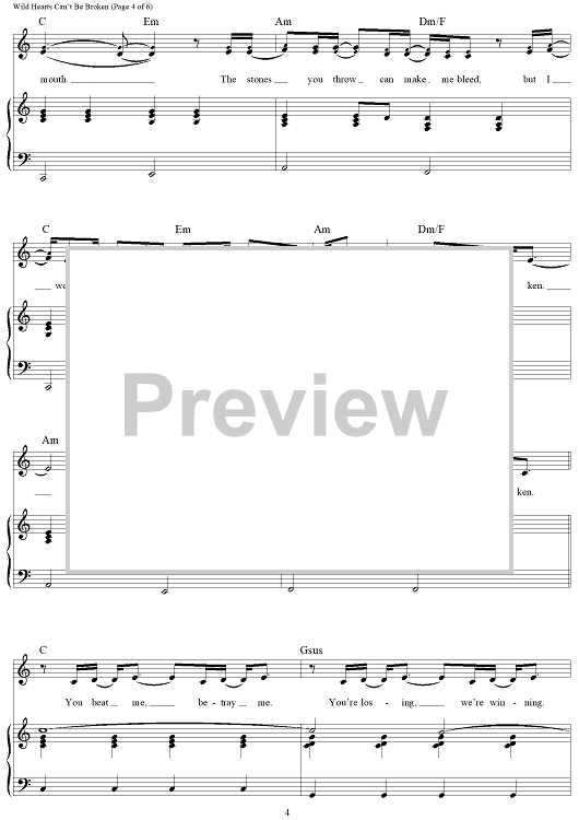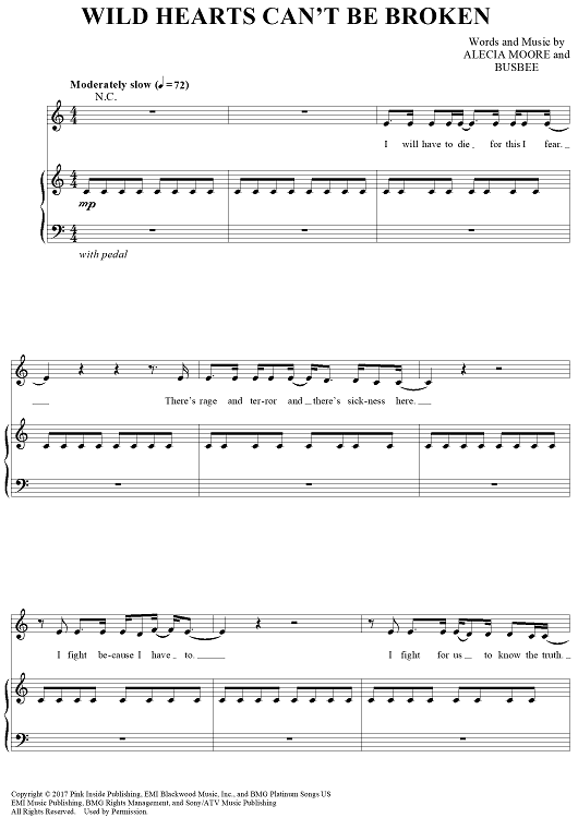 Digital Sheet Music for Wild Hearts Can't Be Broken by Alicia B. Moore, Busbee, Pink scored for Piano/Vocal/Chords; id:465762