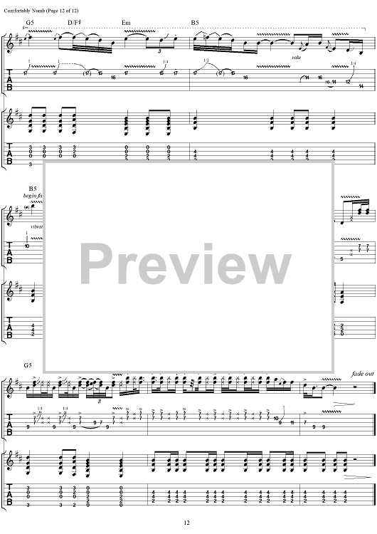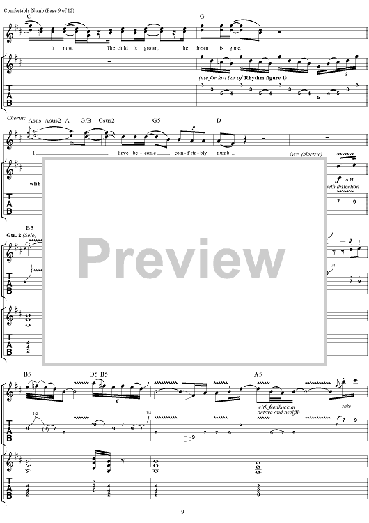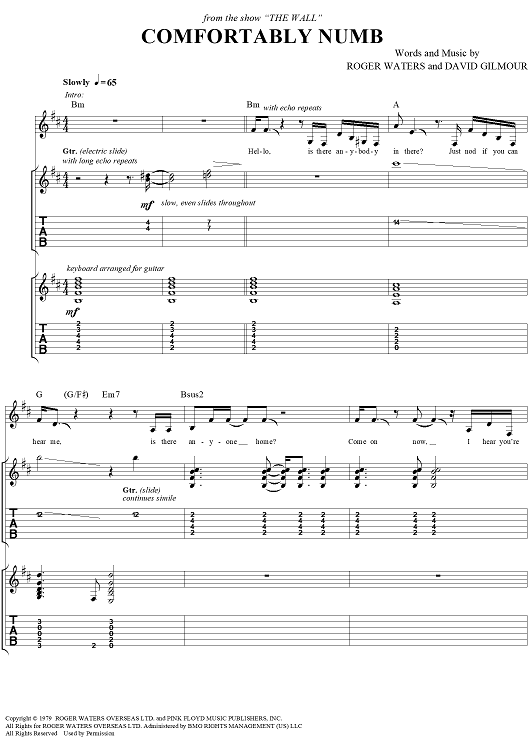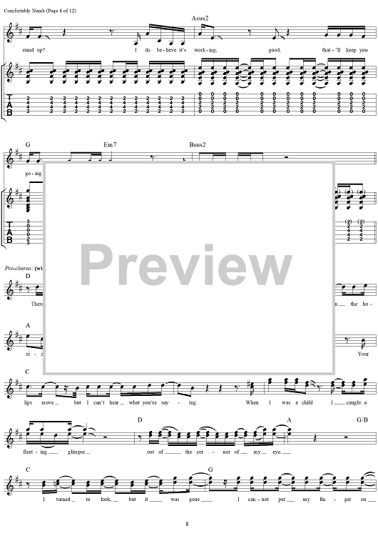 "Comfortably Numb" Sheet Music by Pink Floyd