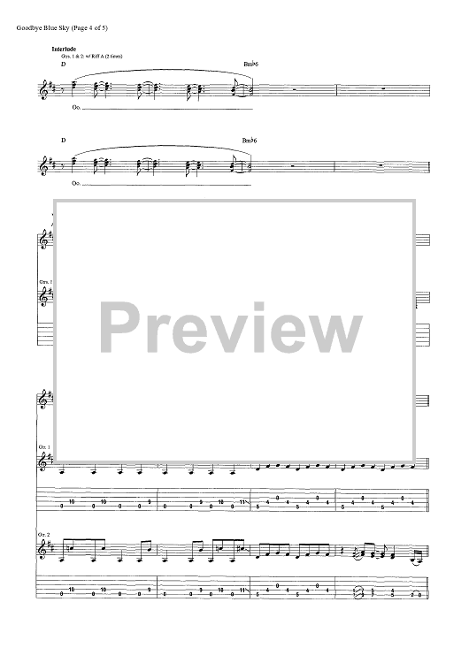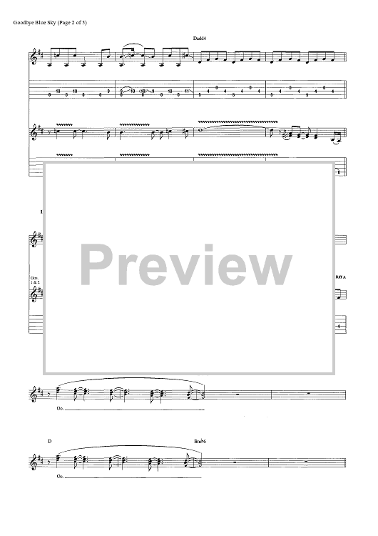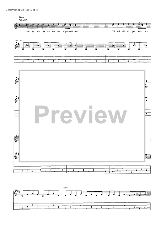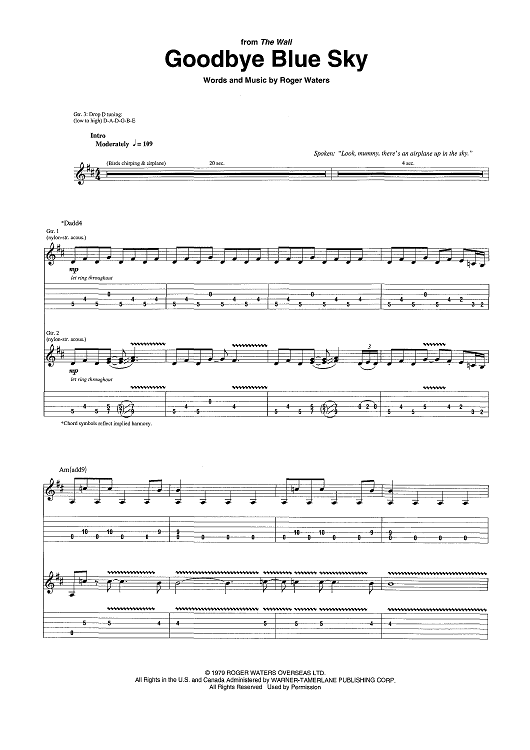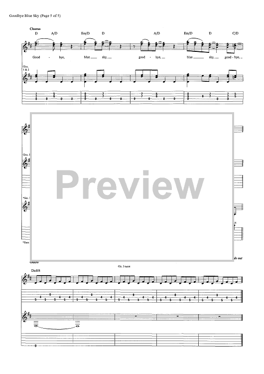 Digital Sheet Music for Goodbye Blue Sky by Pink Floyd, Roger Waters scored for Guitar Tab/Vocal/Chords; id:444872