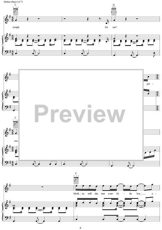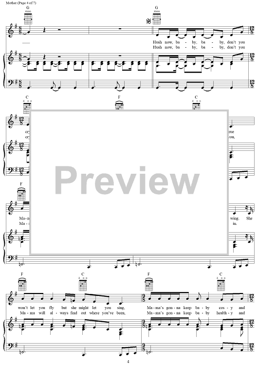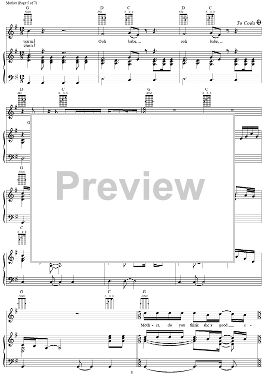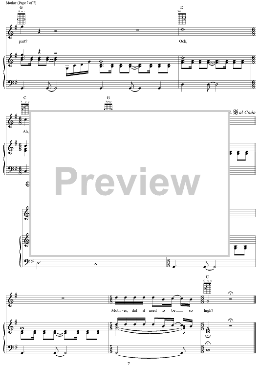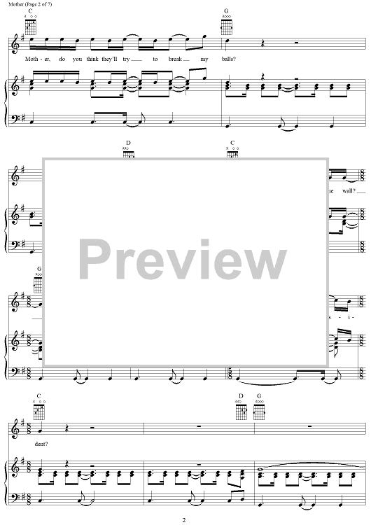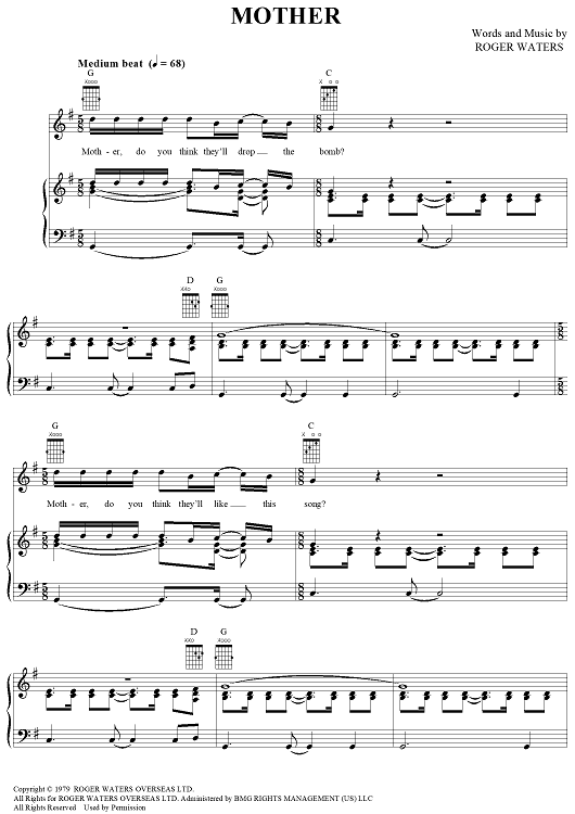 Digital Sheet Music for Mother by Pink Floyd, Roger Waters scored for Piano/Vocal/Chords; id:284290