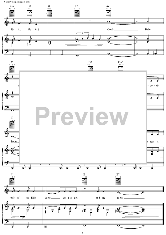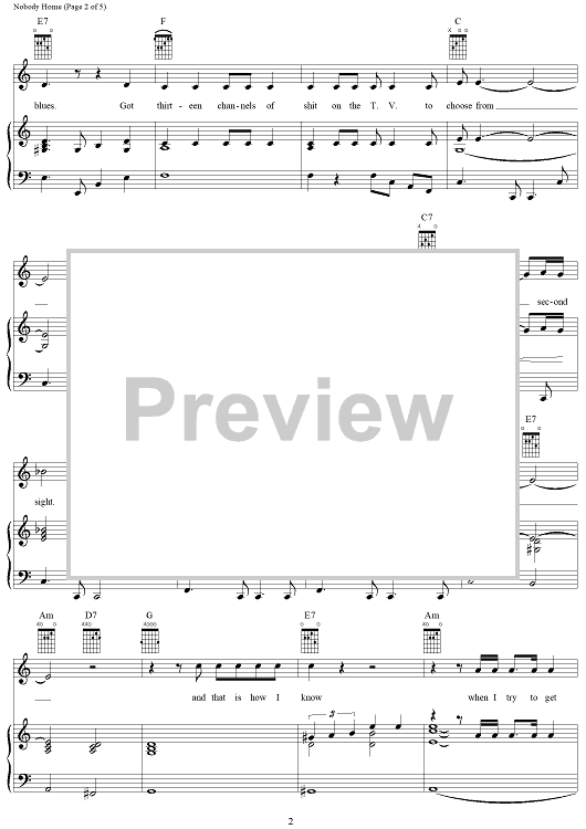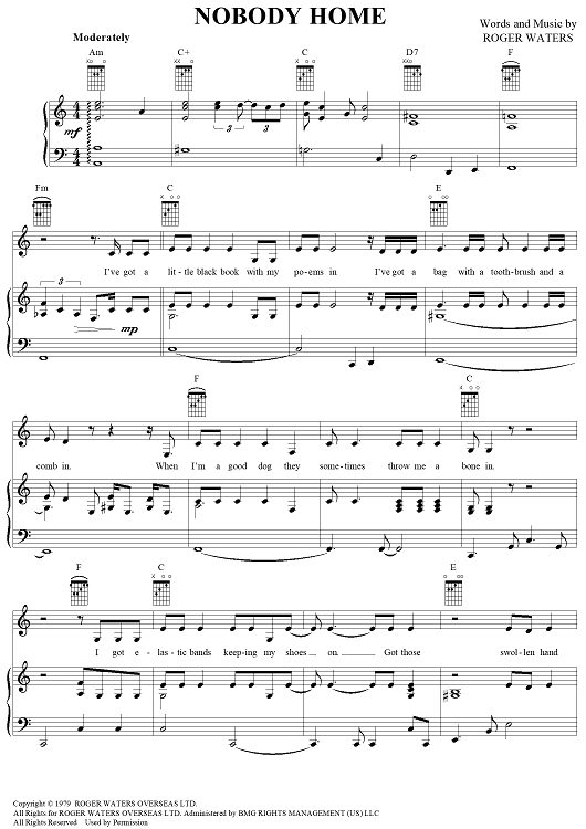 Digital Sheet Music for Nobody Home by Pink Floyd, Roger Waters scored for Piano/Vocal/Chords; id:284291