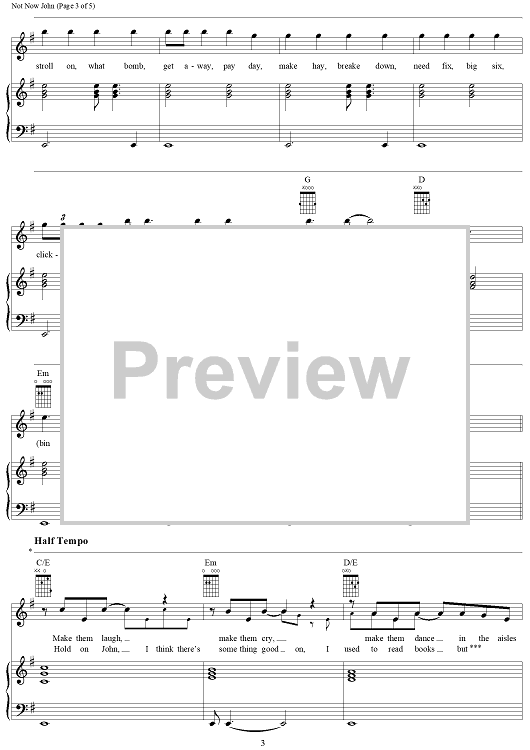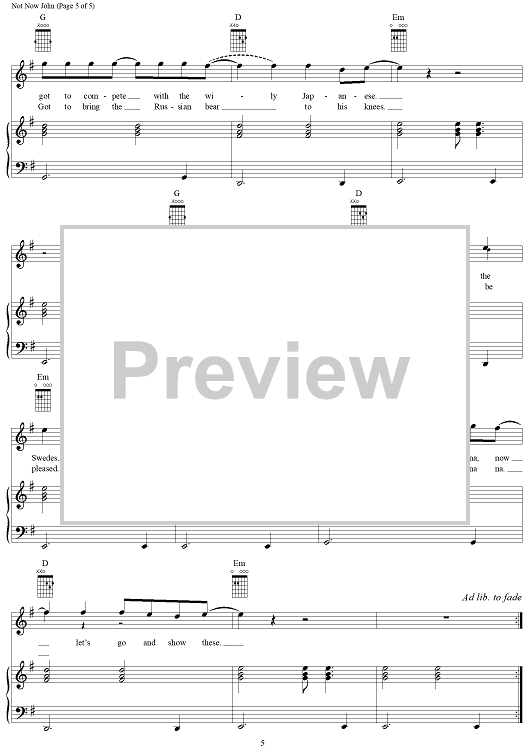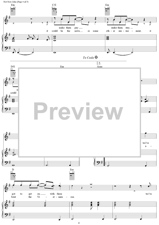 Digital Sheet Music for Not Now John by Pink Floyd, Roger Waters scored for Piano/Vocal/Chords; id:284294