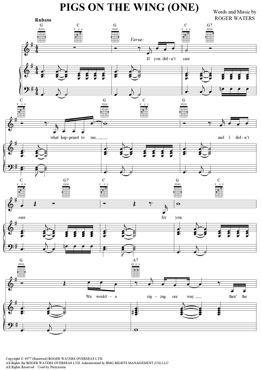Digital Sheet Music for Pigs on the Wing (One) by Pink Floyd, Roger Waters scored for Piano/Vocal/Chords; id:284281