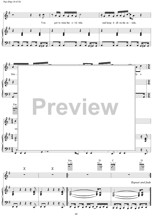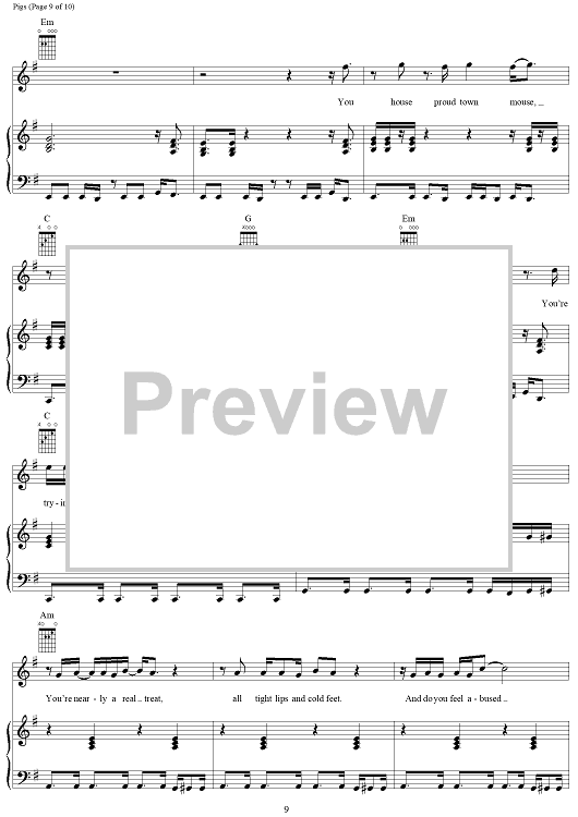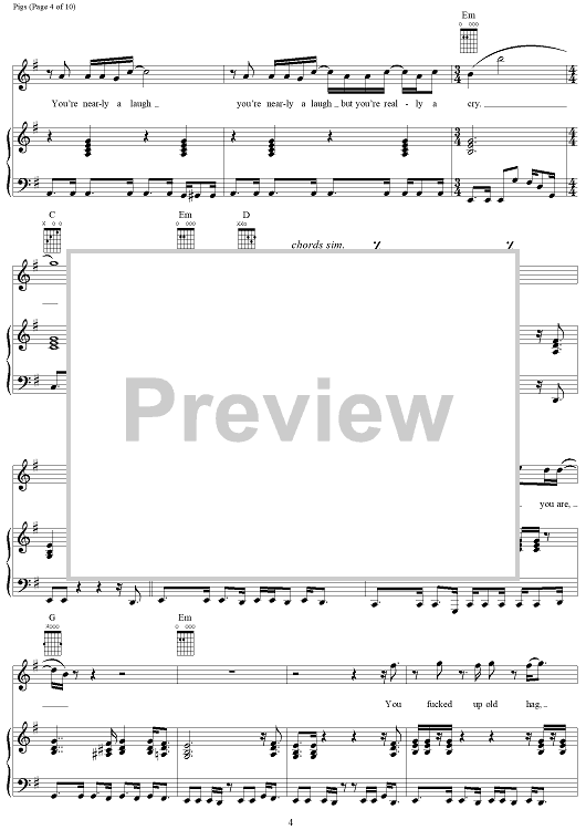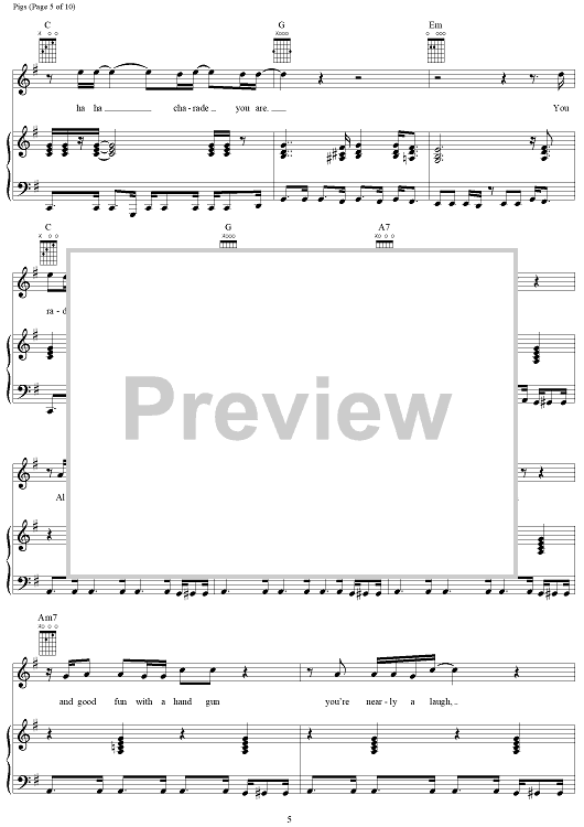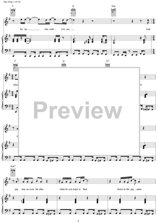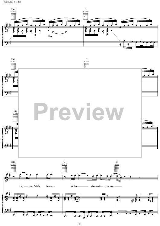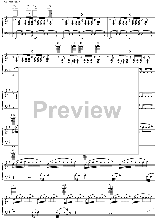 Digital Sheet Music for Pigs (Three Different Ones) by Pink Floyd, Roger Waters scored for Piano/Vocal/Chords; id:284283