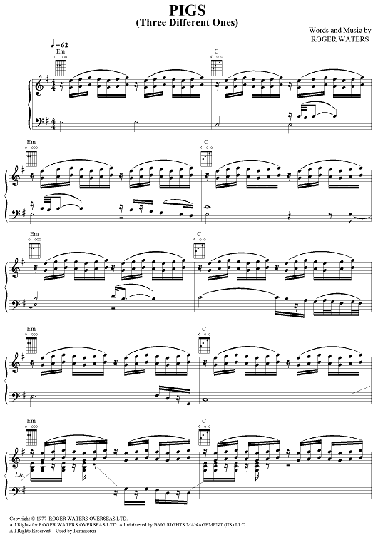 "Pigs (Three Different Ones)" Sheet Music by Pink Floyd