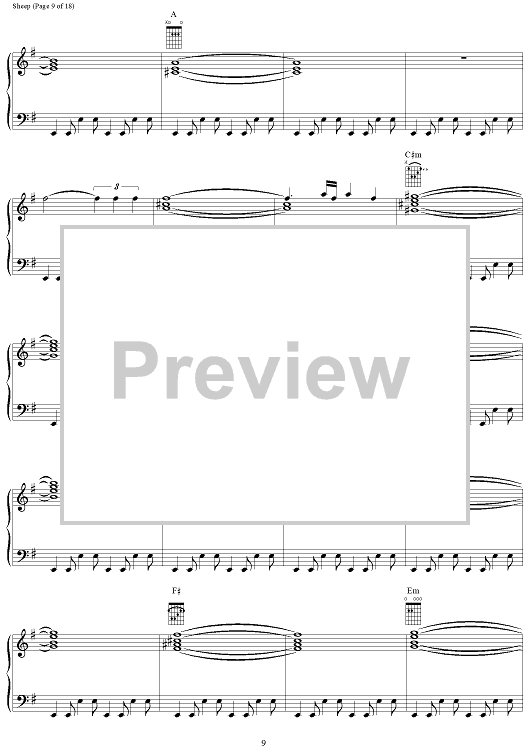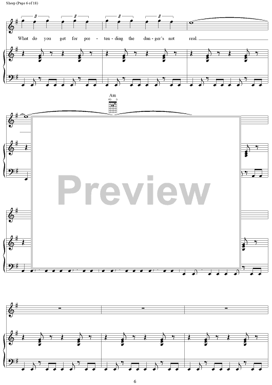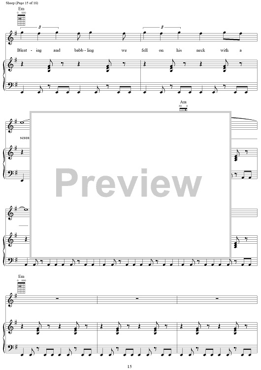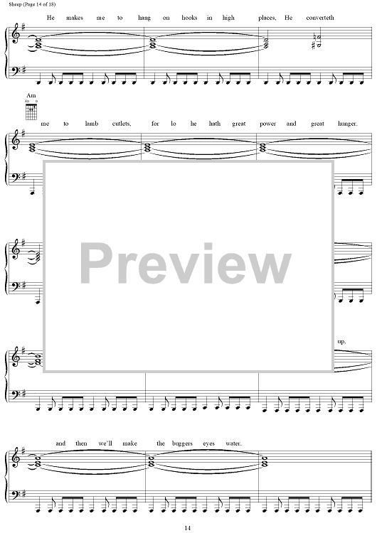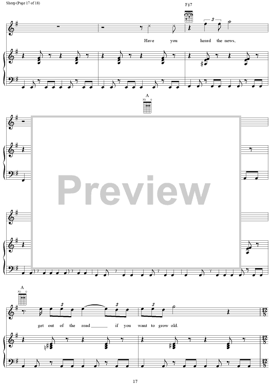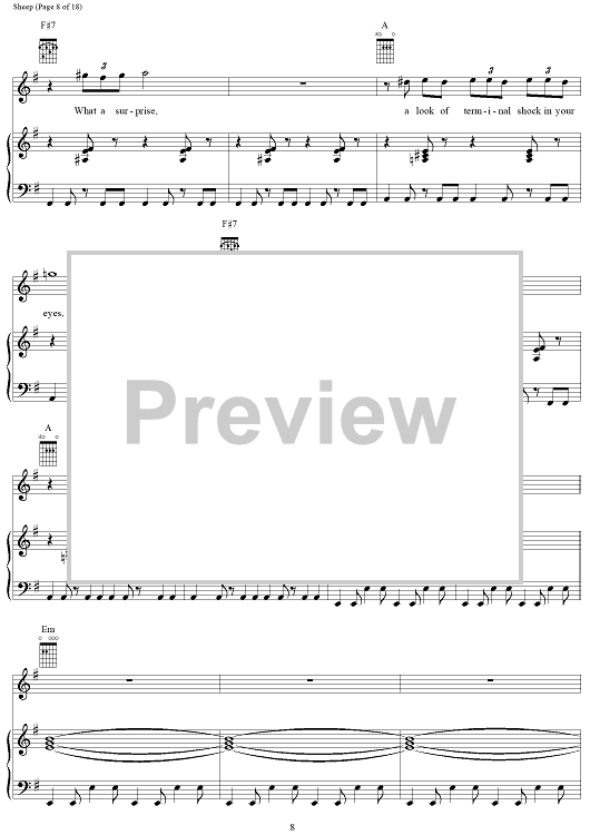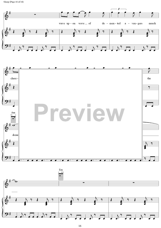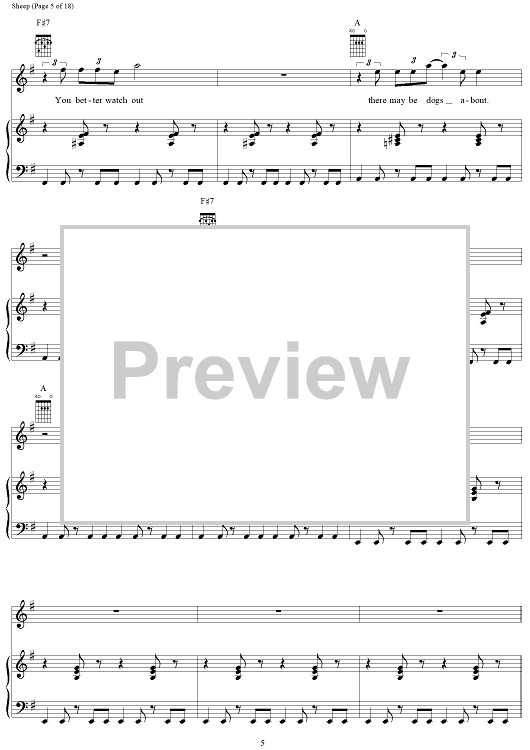 Digital Sheet Music for Sheep by Pink Floyd, Roger Waters scored for Piano/Vocal/Chords; id:284284