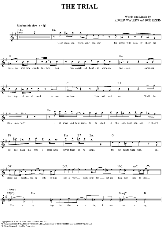 "The Trial" Sheet Music by Pink Floyd