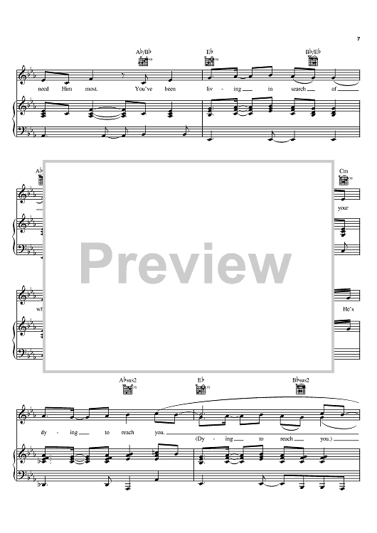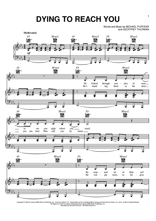 Digital Sheet Music for Dying To Reach You by Point of Grace, Michael Puryear, Geoff Thurman scored for Piano/Vocal/Chords; id:370467