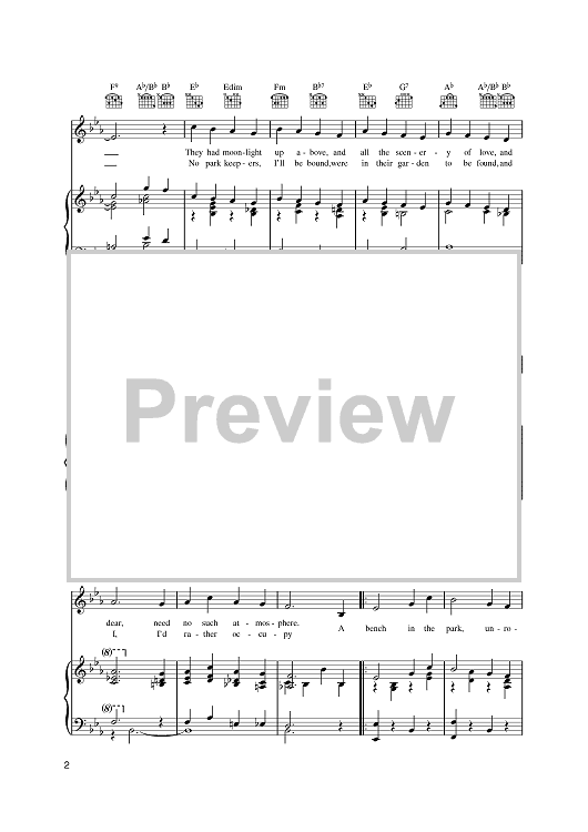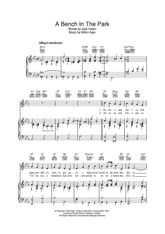 Digital Sheet Music for A Bench In The Park by Milton Ager, Jack Yellen scored for Piano/Vocal/Chords; id:394978