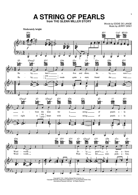 Digital Sheet Music for A String Of Pearls by Jerry Gray, Eddie De Lange scored for Piano/Vocal/Chords; id:368502