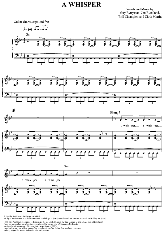 Digital Sheet Music for A Whisper by Chris Martin, Coldplay, Jonny Buckland, Guy Berryman scored for Piano/Vocal/Chords; id:321319