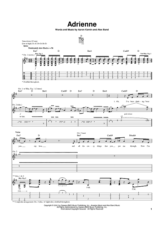 Digital Sheet Music for Adrienne by Aaron Kamin, Alex Band, The Calling scored for Guitar Tab; id:369423