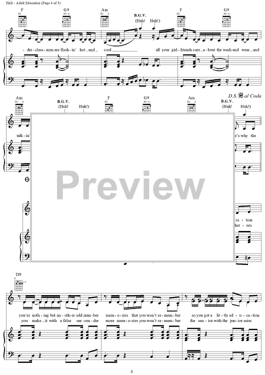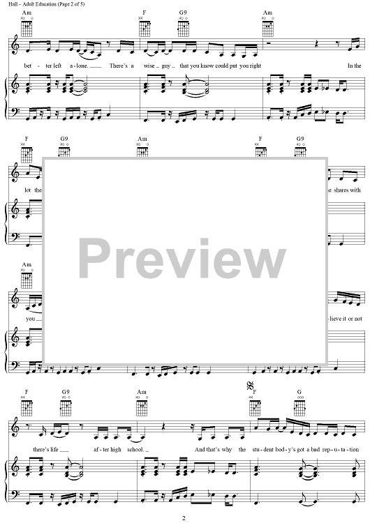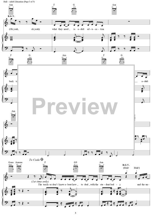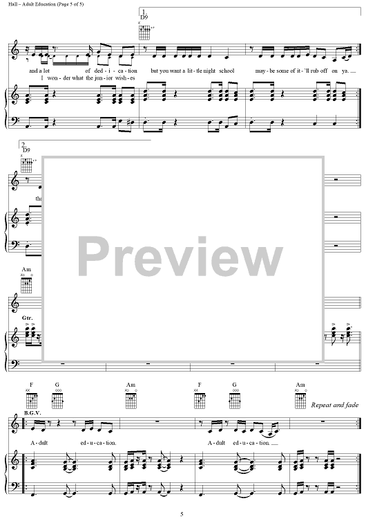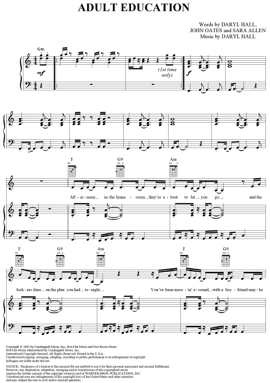 Digital Sheet Music for Adult Education by Daryl Hall, John Oates, Sara Allen scored for Piano/Vocal/Chords; id:355941
