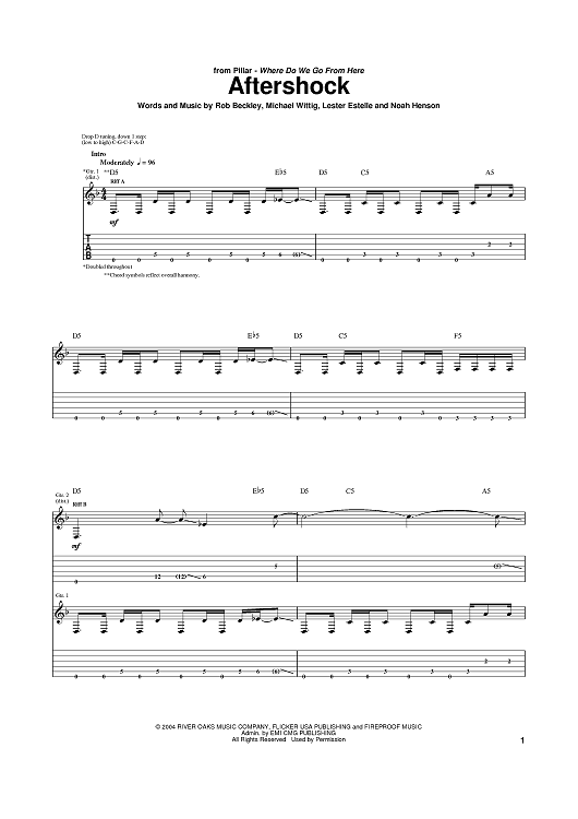 Digital Sheet Music for Aftershock by Rob Beckley, Lester Estelle, Noah Henson, Pillar, Kalel scored for Guitar Tab; id:380288