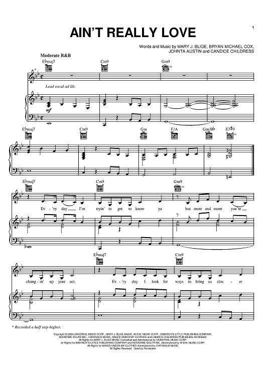 Digital Sheet Music for Ain't Really Love by Mary J. Blige, Bryan-Michael Cox, Johnta Austin, Candice Childress scored for Piano/Vocal/Chords; id:395050