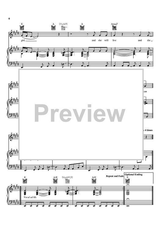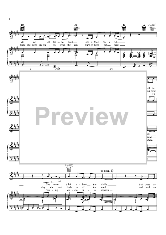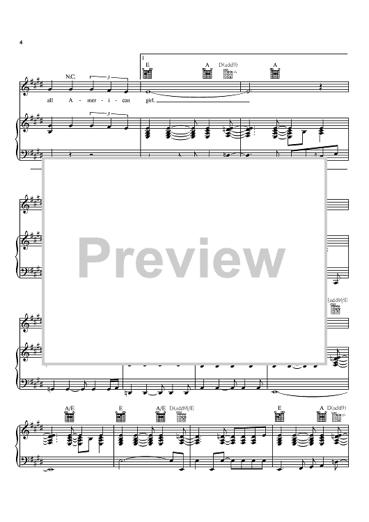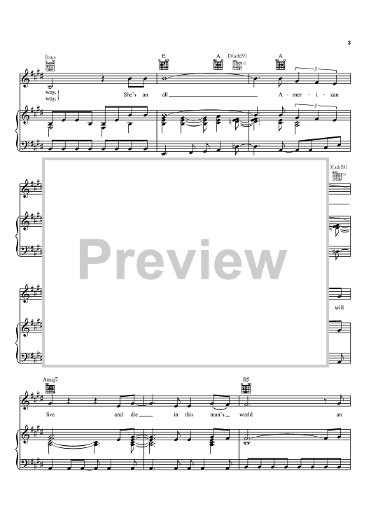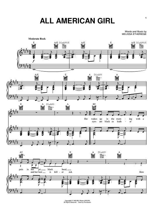 Digital Sheet Music for All American Girl by Melissa Etheridge scored for Piano/Vocal/Chords; id:386048