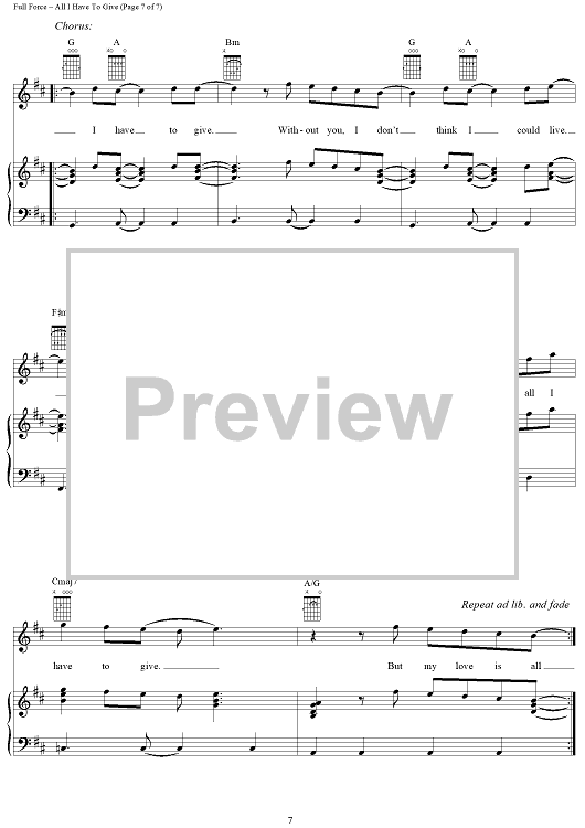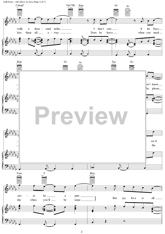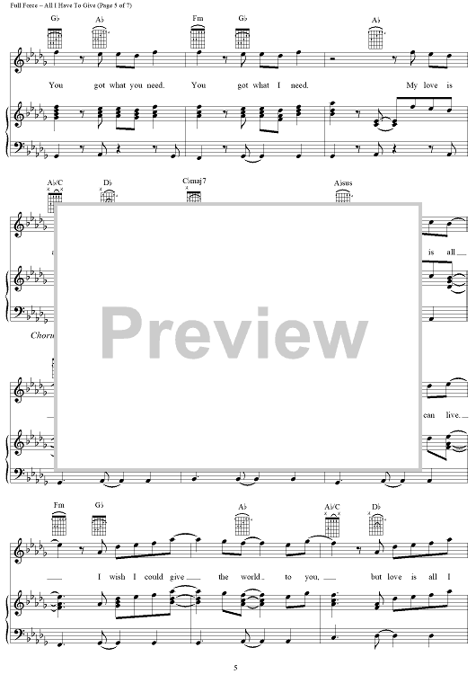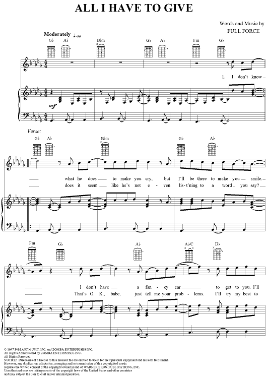 Digital Sheet Music for All I Have To Give by Full Force, Backstreet Boys scored for Piano/Vocal/Chords; id:112696