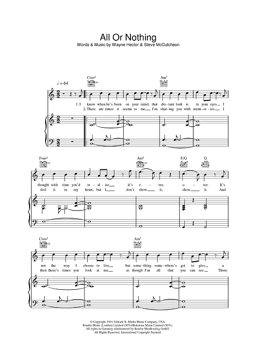 Digital Sheet Music for All Or Nothing by Westlife, Wayne Hector, Steve McCutcheon scored for Piano/Vocal/Chords; id:394691