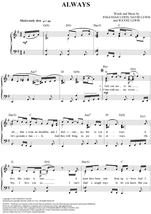 Digital Sheet Music for Always by Jonathan Lewis, Wayne Lewis, David Lewis scored for Piano/Vocal/Chords; id:250617