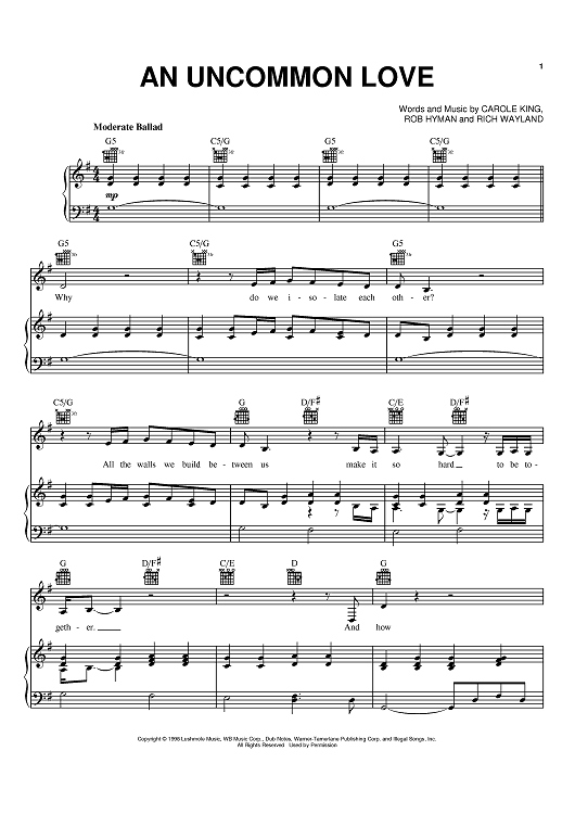 Digital Sheet Music for An Uncommon Love by Carole King, Rob Hyman, Rich Wayland scored for Piano/Vocal/Chords; id:372618