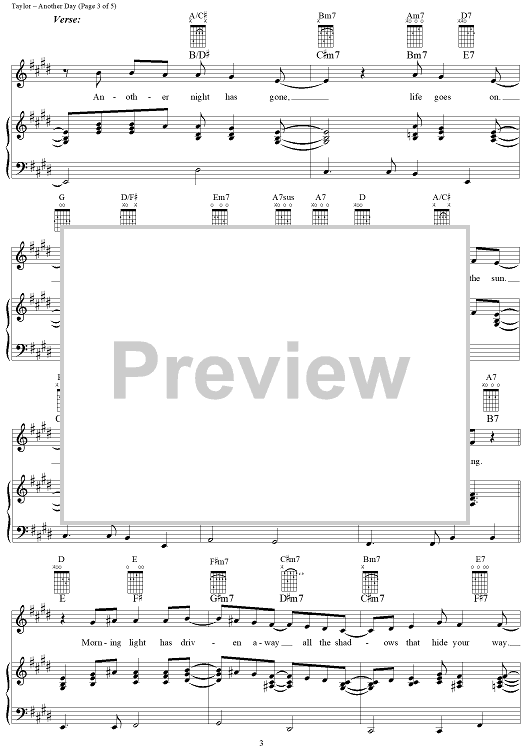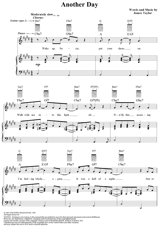 Digital Sheet Music for Another Day by James Taylor scored for Piano/Vocal/Chords; id:113198