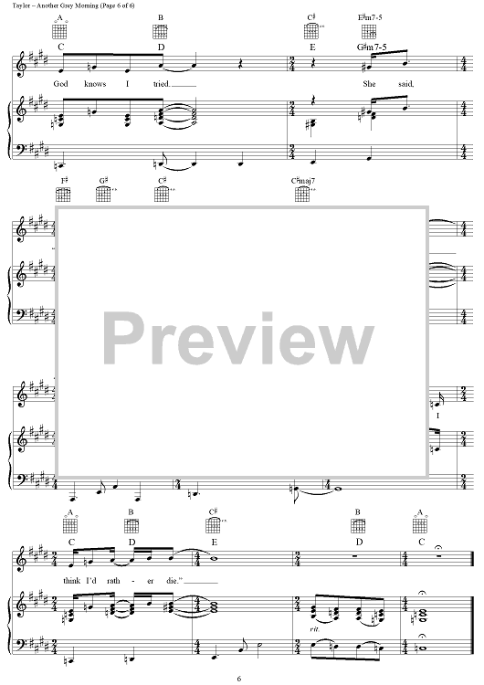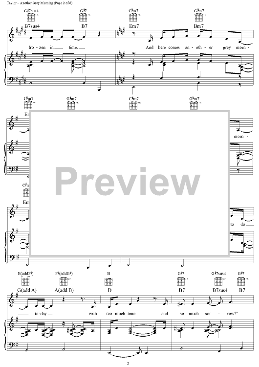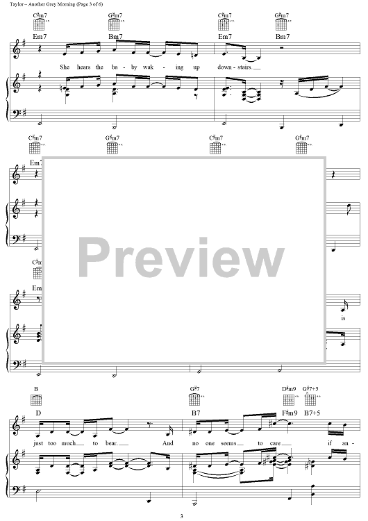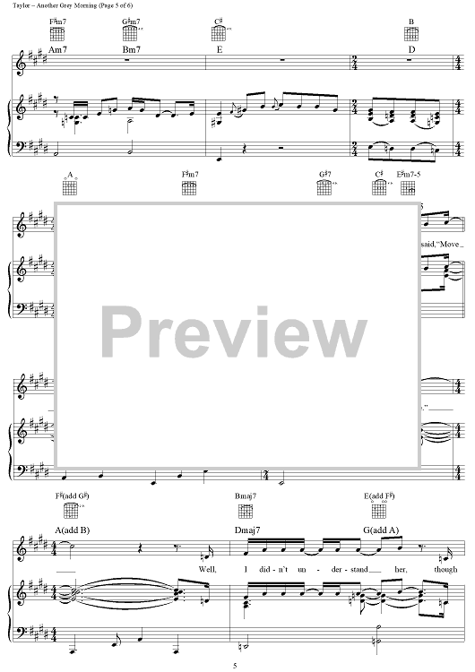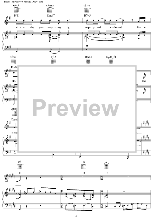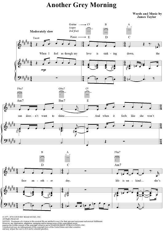 Digital Sheet Music for Another Grey Morning by James Taylor scored for Piano/Vocal/Chords; id:111355