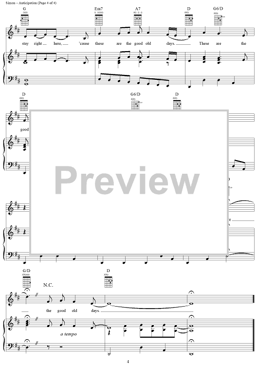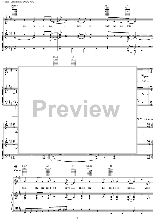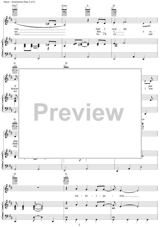 Digital Sheet Music for Anticipation by Carly Simon scored for Piano/Vocal/Chords; id:286521