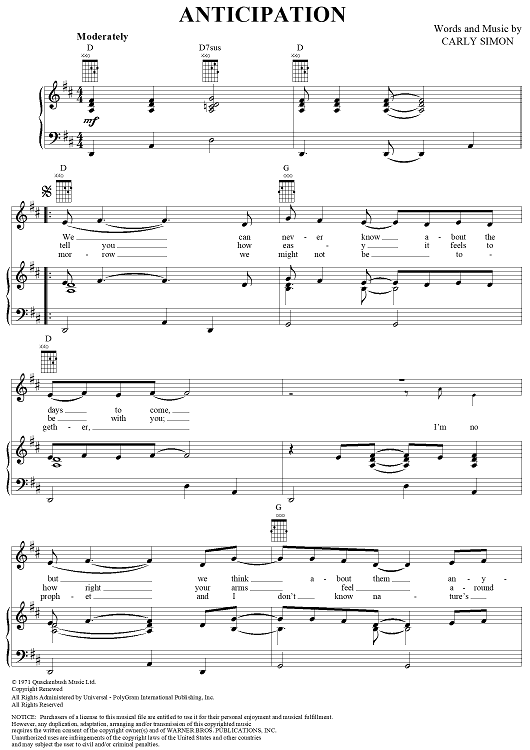 "Anticipation" Sheet Music by Carly Elisabeth Simon